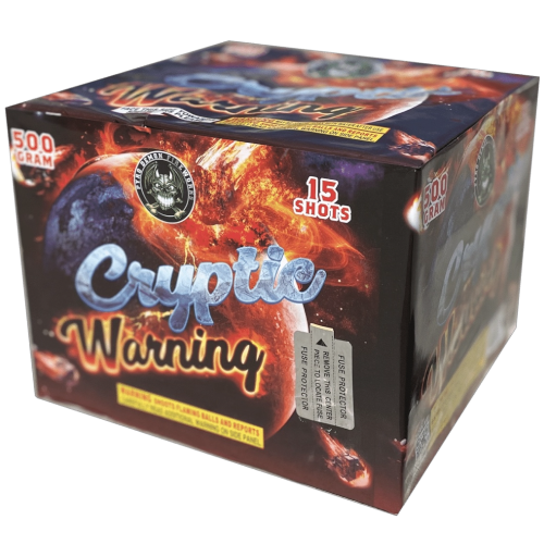 "Cryptic Warning": 500 grams of intense light! Red, green, and white tails and mines launch to huge palm breaks with dazzling strobe effects.