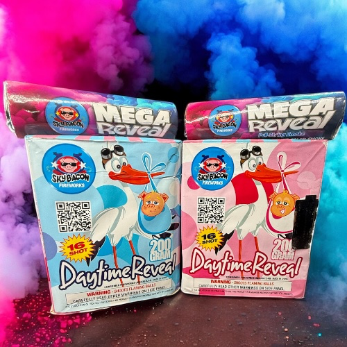 The Ultimate Gender Reveal Kit! Make your big announcement unforgettable with our all-in-one celebration pack. Whether it’s Team Pink or Team Blue, this kit delivers maximum impact. It features two 16-shot 200-gram cakes that fire rapid bursts of colored smoke with a loud "pop" report, ensuring everyone in the neighborhood knows the big news. It’s loud, it’s colorful, and it’s ready to celebrate!. To keep the magic going on the ground, we’ve included two high-output pull-string smoke bombs that wrap your celebration in a vivid 2-minute cloud of color—perfect for those once-in-a-lifetime photos!