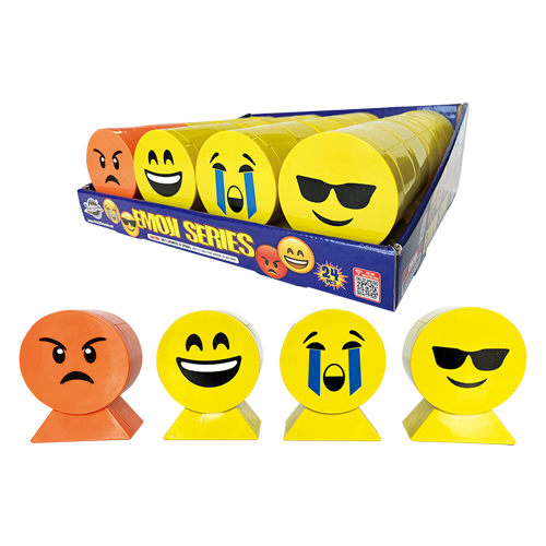 A must-buy emoji series fountains for your kids! 4 assorted effects. A: Orange, blue, red and blue with white strobe. B: Red, blue and gold chrysanthemum., laser crackling with red and blue, crackling flower with blue and green. C: Gold chrysanthemum. With red and green D: Silver spring, fishes, white chrysanthemum. With red and blue