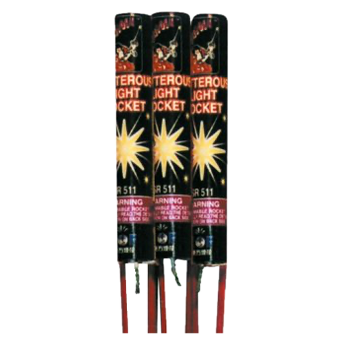 6 PACK = Glitterous Lights Rockets are packaged in a shrink wrap 6 pack. This rocket has high performance from the ground up to approximately 200 feet. At the apex the rocket bursts and produces an effect designed to mimic bees swarming in nature. Different colors and dancing effect make this one of the finest performing and colorful generic rockets on the market.