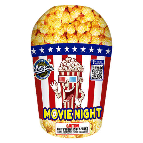 Get a movie night for your 4th of July backyard show! Color fish, color tassel flower, gold chrysanthemum with green, blue and small crackling flower, red and green strobe with crackle, gold chrysanthemum., crackling flower