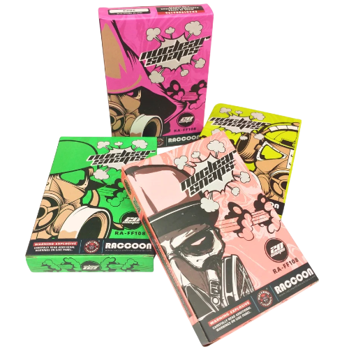 Nuclear Snaps 20-Count – Now in 4 High-Visibility Colors! The heavy hitters of the snap world have arrived in color. Nuclear Snaps 20-packs feature maximum-payload adult snaps in 4 distinct tactical colors. Experience the loudest percussive report and shockwave sound in the industry.