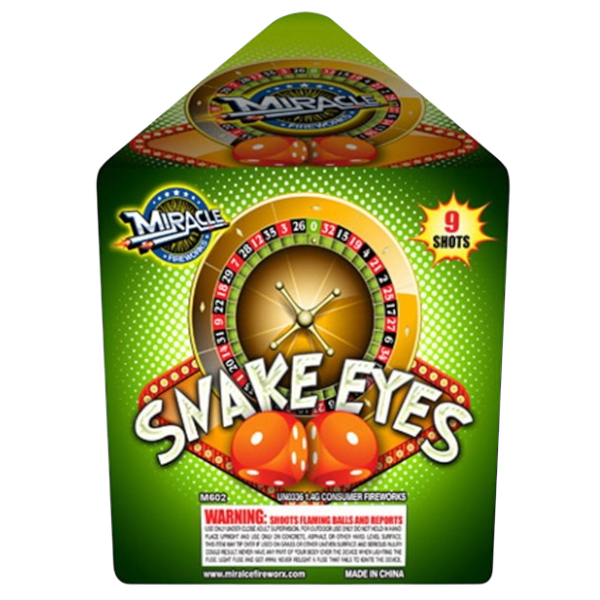 Snake Eyes 9-Shot 200g Fireworks Cake – Palm Tree with Time Rain Bet on a winner with Snake Eyes! This 9-shot 200g cake features crackle tails to red, green, and blue palm trees. Finished with a heavy-duty time rain crackle. High-caliber performance and wide sky saturation.
