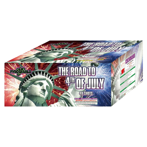 "The Road to 4th of July": 500 grams of pure beauty! A fanned mine launches spectacular blue and golden willows that fill the night sky.