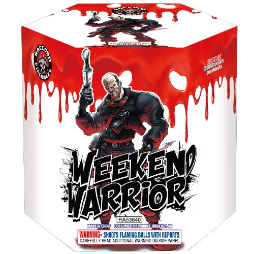 Weekend Warriors 7-Shot 500g Firework – Nishiki Willow & Silver Fish Take command with Weekend Warriors! This 500g XL-bore cake features 7 massive shots of Japanese Nishiki willows, sapphire blue stars, and swimming silver fish. Maximum payload per tube ensures the largest legal break diameters and professional-grade "hang-time." A unique, high-end multi-effect firework.