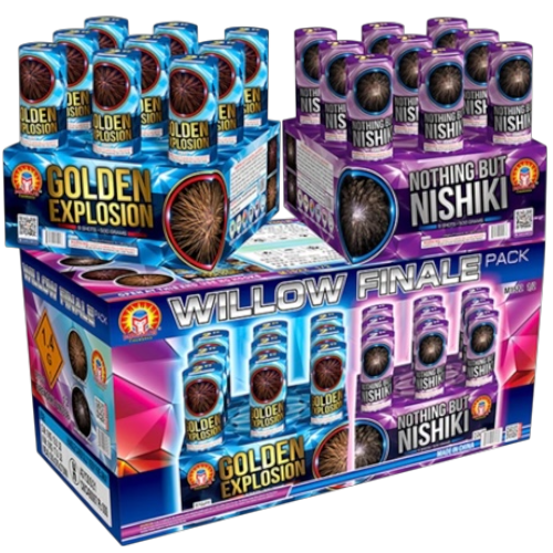 Willow Explosion 24-Shot 500g Firework – Fast-Paced Gold & Blue Fill the night with Willow Explosion! This 24-shot 500g aerial cake delivers a high-velocity display of massive golden willows and deep blue stars. Features rapid-fire cadence and professional-grade sky saturation. Maximum "hang time" meets high-speed performance for a continuous golden canopy. The ultimate high-energy willow firework for 2026.